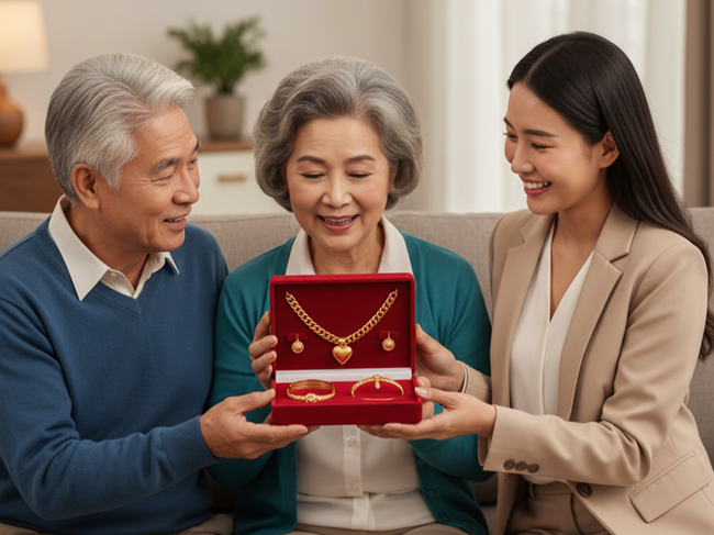 ผู้ใหญ่จะถูกใจ ทองรูปพรรณลายไทย ลายโบราณ หรือชิ้นงานน้ำหนักดี เช่น สร้อยคอหรือกำไลทองที่ดูภูมิฐาน ทองรูปพรรณในกลุ่มนี้ไม่ได้มีแค่ความสวย แต่ยังสะท้อนความเคารพ และเป็นทรัพย์สินที่เก็บไว้ได้ยาวนาน